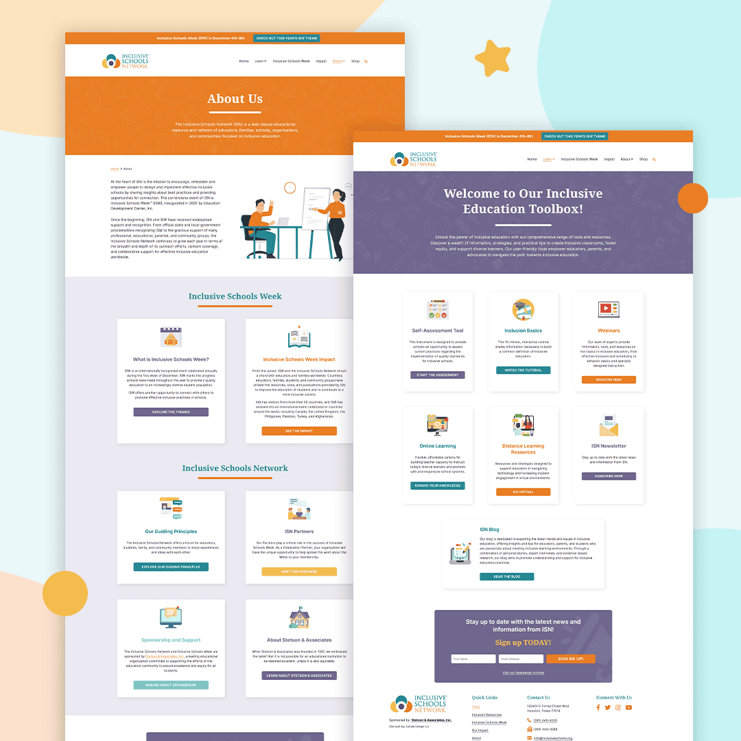 The website was 10 years old, and it was overdue for a refresh. It had an outdated design and lacked some important functionality. A major challenge was that content was hidden in sub-pages, and those pages weren’t easy to find as they weren’t in the main navigation menu. Additionally, all posts used the same layout, yet there were many different types of posts (blog, client stories, Inclusive Schools Week Themes, etc.), each of which would have benefited from a unique layout.